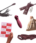 Mix and match our bestselling double-ended vibe Quinn, padded cuffs, silk-lined blindfold and a buttery-soft vegan leather crop and tassel. Turn up the heat together by exploring a menu filled with 10 playful challenges, expertly crafted by the internet's favourite couples challenge duo Ben&Jas.